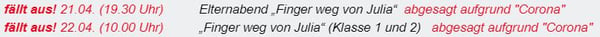 Die zwei Termine rund um das Theaterstück "Finger weg von Julia" fallen aus. Ersatztermine stehen noch nicht fest.