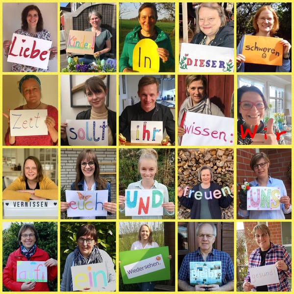 "Liebe Kinder, wir denken an Euch und freuen uns auf ein Wiedersehen! Haltet die Ohren steif und bleibt gesund!"