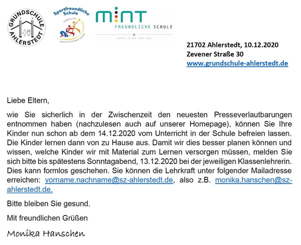 Der Brief, der am Wochenende auch schon über die Klassenverteiler der Eltern angekommen sein müsste, hier einmal zum Download: