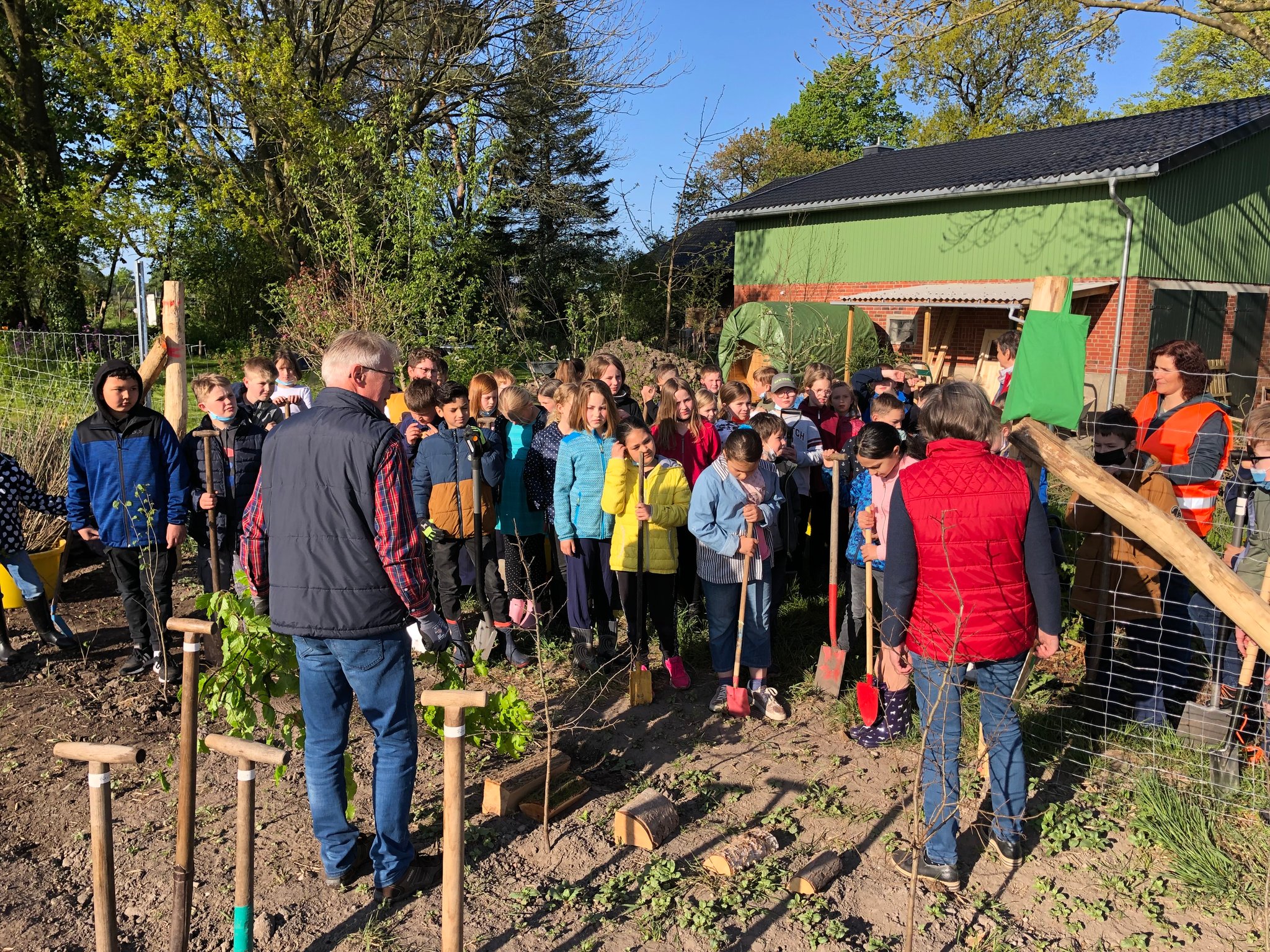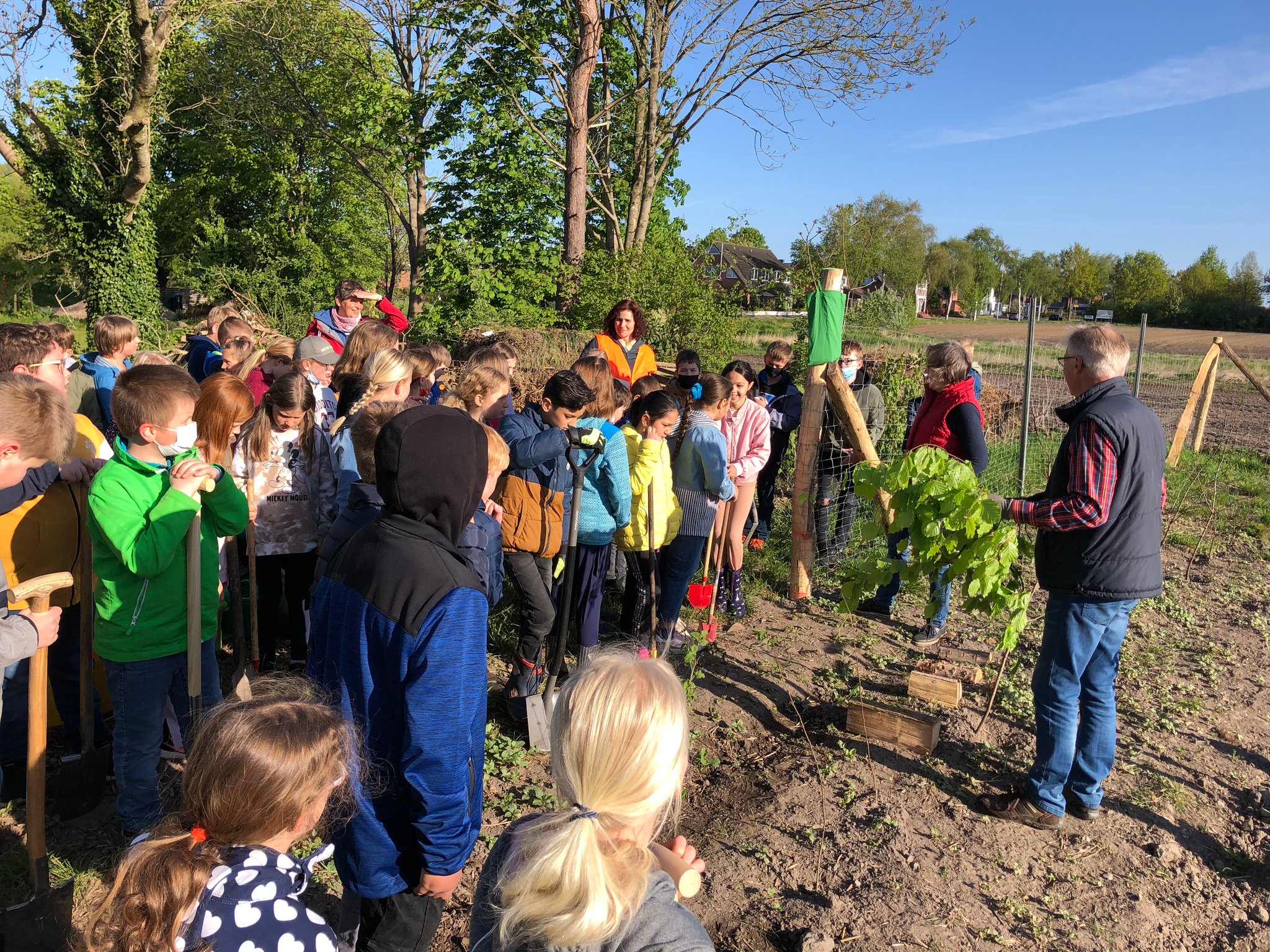Alle Klassen pflanzten anschließend unter engagierter Anleitung von Ehepaar Pott auf dem Grundstück von Frau Lemmermann aus Ahlerstedt insgesamt 200 Bäume an. Danke, dass wir diese Aktion so durchführen konnten und auch danke an Förster U. Fürst für die Vorbereitung dafür!