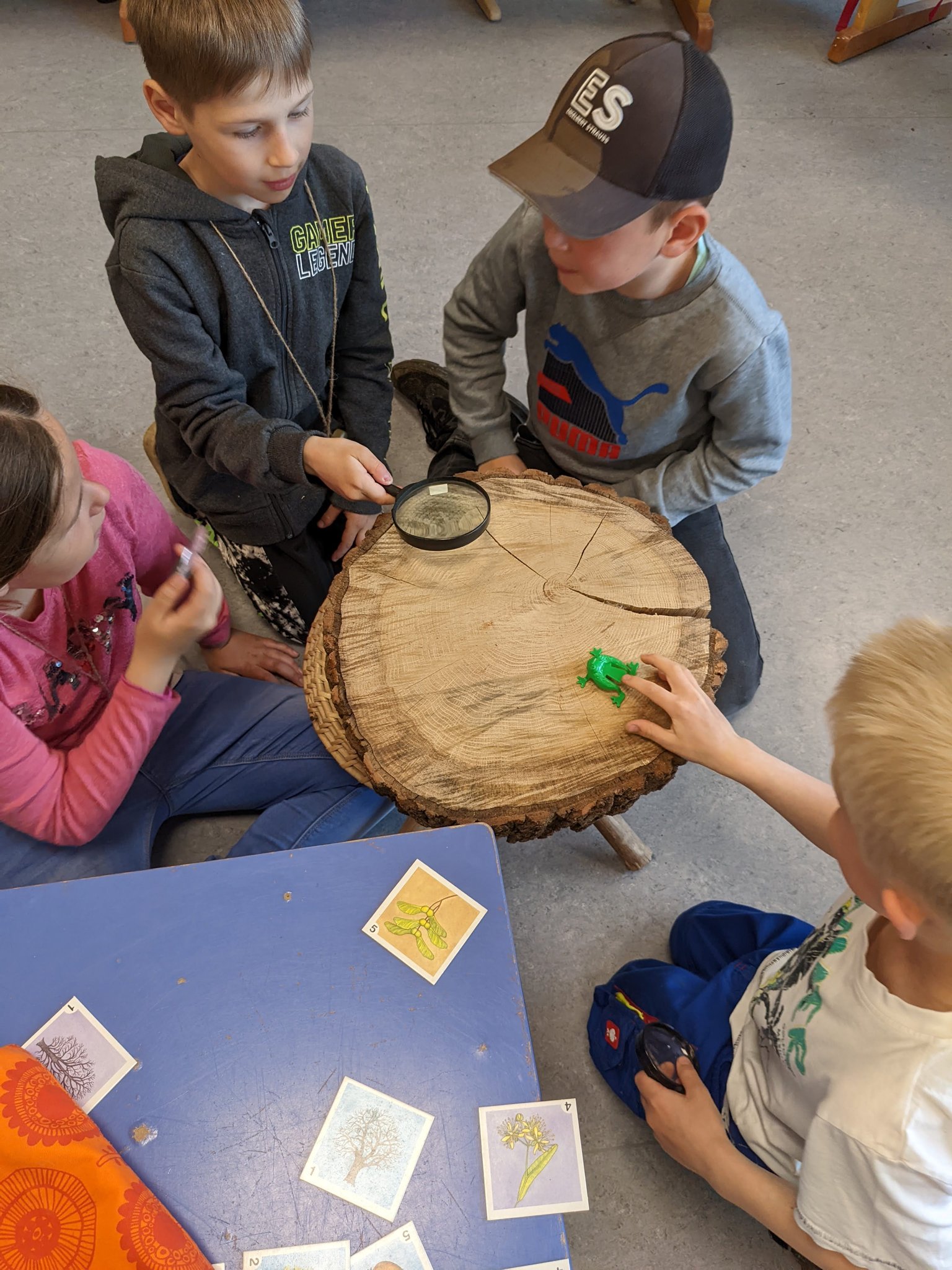 Von Dienstag bis Freitag durchliefen die Kinder unter dem Oberthema „Klima“ in jahrgangsgemischten Gruppen die vier Themenbereiche „Bäume“, „Verkehr“, „Müll“ und „Lebensmittel“.