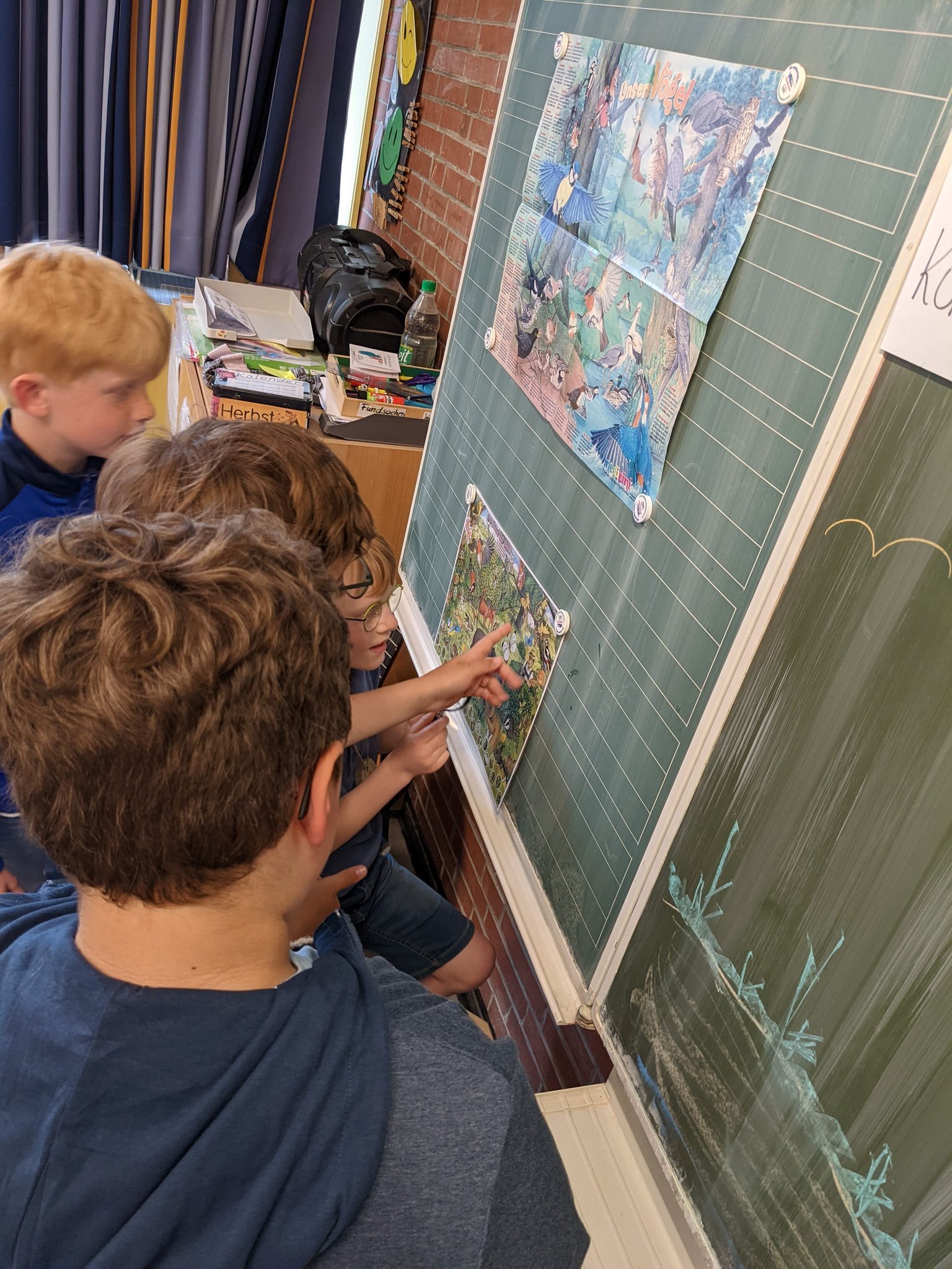 In einer Unterrichtsstunde machten die Kinder einen Hörspaziergang. Sie durften an der Hand eines Partners oder liegend auf der Wiese die Augen schließen und die Geräusche der Umwelt wahrnehmen. Mit geschlossenen Augen erlebten die Kinder ihre Umgebung intensiv und spürten die Auswirkungen des Straßenverkehrs deutlich. Ebenso bemerkten die Kinder, wie schwierig es ist, verschiedene Geräusche zu unterscheiden. Ein Fahrradfahrer ist nicht so leicht zu hören wie ein Lastwagen oder Auto.