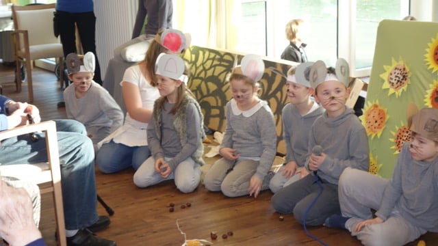 Zum krönenden Abschluss durften die Zweitklässler den Senioren in Ahlerstedt ihr Können zeigen. Also wurden kurzerhand die gebastelten Requisiten von der Schule in die Seniorenresidenz gefahren und dort aufgebaut. Mit viel Spaß sammelten die Mäuse auf der Bühne Vorräte, Katze und Kater tanzten im Kornspeicher und die Farbenkinder zeigten, wovon die Mäuse träumen.
