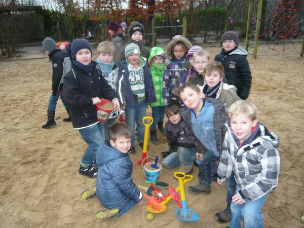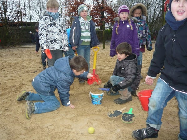 Die Klasse 1c hat die Nase vorn! Die Kinder haben sich Schaufeln, Eimer ... gewünscht.