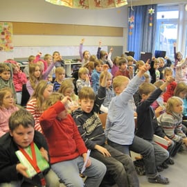 Für jede Klassestufe gab es eine altersgerechte Geschichte. Dabei verstand es Herr Schubert durch ausdrucksstarke Mimik und Gestik und durch geschicktes Nachfragen, alle Kinder in seinen Bann zu