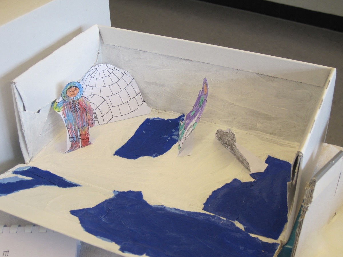 Waldlabor: Hier waren die Kinder oft im Wald unterwegs. Als wir sie besuchen, zeigen sie uns ein Memory und ein Quartett mit Dingen, die sie im Wald gefunden haben, und einen eigenen Wald im Schuhkarton, den sie gebastelt haben.