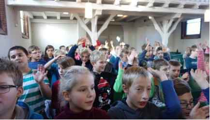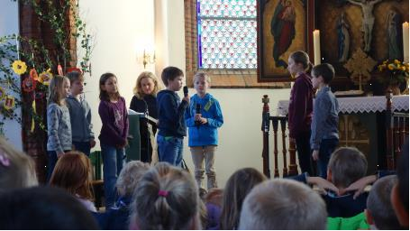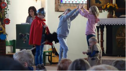 Bei strahlendem Sonnenschein und erfrischender Kälte machte sich die ganze Grundschule Ahlerstedt am Freitag, den 11.11., auf den Weg zur Kirche. Dem langen Menschenzug voran ritt der (fast) echte Sankt Martin (Vielen Dank an Familie Lemmermann!). An der Kirchentür begrüßte uns Diakonin Andrea März und stimmte uns mit „Einfach spitze!“ auf einen fröhlichen Gottesdienst ein. Ein Mädchen hatte ein Gedicht auswendig gelernt und trug es vor. Danach wurde die Geschichte des Sankt Martin, der vor 1300 Jahren lebte und vielen Menschen geholfen hat, vorgespielt. Besonders eindrücklich war, wie er mit einem frierenden Bettler seinen Mantel teilte. Das Sankt-MartinsLied sangen alle Kinder begeistert mit. Nun folgte ein weiteres Anspiel, das die Theater-AG eingeübt hatte. Darin wollte ein Schulkind unbedingt den Sankt Martin spielen und merkte gar nicht, wie seine Freunde in ihrem Alltag schon längst die Rolle des Martin übernommen, anderen geholfen und mit ihnen geteilt hatten. Diesen Gedanken nahm die Diakonin mit in ihre Predigt und entfaltete die Bedeutung des Teilens als Herzenssache. „Wahres Teilen heißt, das Beste geben, das man hat.“ Das leuchtete den Kindern ein. Sie konnten es gut mit dem Licht der Laterne verbinden, das man zu anderen Menschen bringt und ihr Herz damit hell macht. Als praktische Umsetzung finden zur Zeit in vielen Klassen Aktionen statt, ein Weihnachtspäckchen für arme Kinder in Rumänien zu packen. „Wenn jeder gibt, was er hat, dann werden alle satt“, sangen wir als passende Antwort. Die dritten Klassen hatten Fürbitten vorbereitet, in denen sie Gott um ein weites, offenes Herz wie das des Sankt Martin baten. Dazu wurden immer mehr Lichter angezündet. Am Ende des Gottesdienstes durften alle Kinder diese Laternenlichter mit nach Hause nehmen. Mit Vaterunser, Gottes Segen und dem Mutmachlied „Gemeinsam sind wir stark“ machten wir uns fröhlich und gestärkt wieder auf den Weg zurück in die Schule. Wir haben einen besonderen Martinstag erlebt, der uns sicher in Erinnerung bleiben wird.