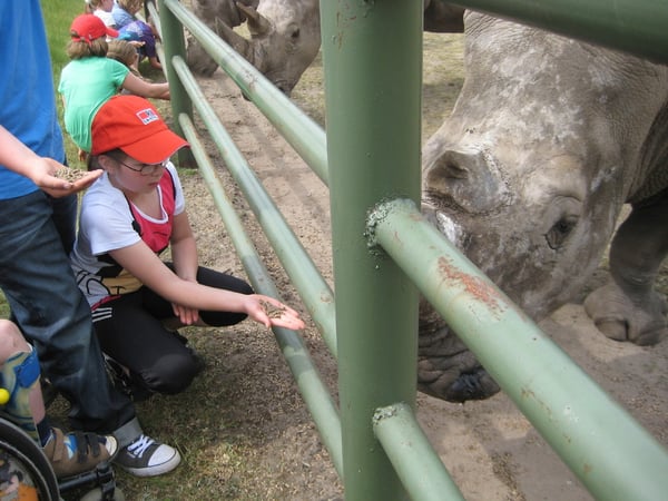 z. B. Löwen, Giraffen, weiße Tiger und viele mehr. Am Ende der Busfahrt durften wir die Elefanten und Nashörner streicheln und füttern, was total aufregend war. Im Freizeitpark waren wir auch