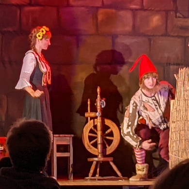 Die Adventszeit haben die dritten Klassen mit einem Ausflug ins Märchenland begonnen. Mit dem Bus fuhren wir nach Zeven. Nachdem die Kinder ein bisschen im Park herumtoben konnten, warteten alle im großen Rathaussaal ganz gespannt auf das Rumpelstilzchen. Wir erlebten mit, wie es von der freundlichen Hexe seine Zauberkräfte bekam. Wir lernten den Müller und seine schöne Tochter Johanna kennen, in die sich der Königssohn Hals über Kopf verliebte. Doch hatte der Müller erzählt, sie könne Stroh zu Gold spinnen. Verzweifelt saß Johanna in einer Kammer voller Stroh im Schloss. Da war das Rumpelstilzchen zur Stelle. Für seine Hilfe versprach die Müllerstochter ihm ihr erstes Kind. Sie heiratete den Prinzen, wurde Königin und bekam ein Baby. Spannend wurde es, als Rumpelstilzchen wieder auftauchte und das Kind abholen wollte. Aus Mitleid gab das Männchen der Königin drei Tage Zeit, um seinen Namen herauszufinden. Damit die Kinder ihr den Namen nicht verraten konnten, zauberte es eine unsichtbare Mauer, so dass die Königin die lauten „Rumpelstilzchen“–Rufe aller Kinder im Saal gar nicht hören konnte. Doch ihr Mann, der König, fand den Namen heraus. Rumpelstilzchen ärgerte sich so sehr darüber, dass es vor Wut platzte. Das Kind war gerettet und alle im Schloss machten einen großen Freudentanz. „Sehr cool und lustig“ fanden die Kinder die Figuren. „Und sie konnten toll singen.“ Alle haben den Ausflug sehr genossen. In der Schule machte es in den nächsten Tagen dann sogar ein bisschen Spaß, eine Lernwerkstatt zum Thema „Rumpelstilzchen“ zu bearbeiten. So märchenhaft mögen wir die Adventszeit besonders gern!